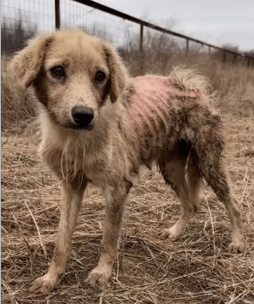 Lying in the cool mud was a small dog, barely more than a fragile outline against the earth. Her body was thin and exhausted, worn down by time and neglect. Each breath came shallow and uncertain, as if continuing required effort. Around her neck rested a heavy, rusted chain — its weight telling a story of confinement, isolation, and a life lived without choice.