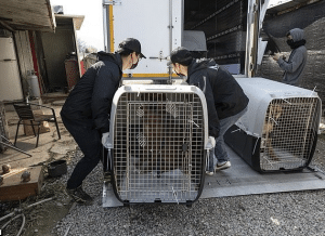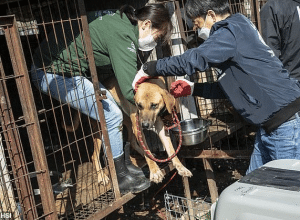 His earliest days were spent confined in a dog meat operation on the outskirts of Yongin, South Korea. Nearly fifty dogs were crammed into aging wire cages, stacked so close together that movement was restricted and privacy didn’t exist. The ground beneath them was constantly damp and cold. Clean water was scarce. Comfort was nonexistent. In an environment like that, drawing attention could be dangerous. Robin learned early that silence was the safest way to make it through each day.