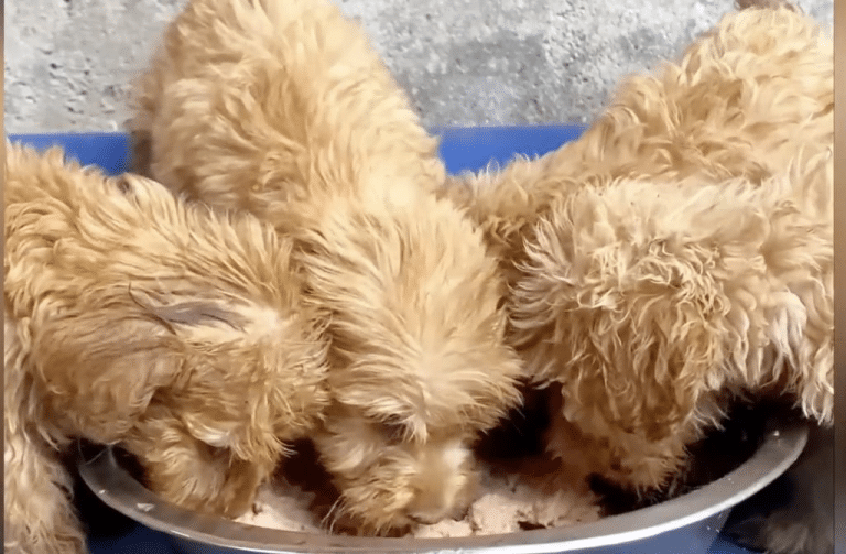 Each puppy was bathed in comfortably warm water, washing away the mud, the chill, and the memory of the storm. At first, they trembled—not from fear, but from the unfamiliar sensation of kindness after prolonged cold. As the dirt rinsed away, their true coats emerged. Soft cream tones, pale gold highlights, and gentle curls appeared beneath the grime. They were far more beautiful than anyone could have guessed.