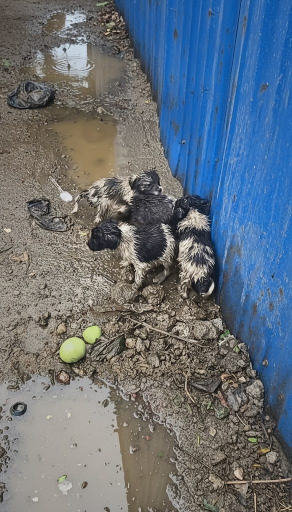 When I arrived, the reality was even harder to absorb than I had imagined. Pressed tightly together beside a garbage bin were several tiny bodies, trying to make themselves as small as possible. Their fur was matted with dirt and rain, heavy with cold. They weren’t just shivering from the temperature. They were afraid. That narrow space beside discarded waste had become their only refuge, the one place where they felt hidden enough to survive.