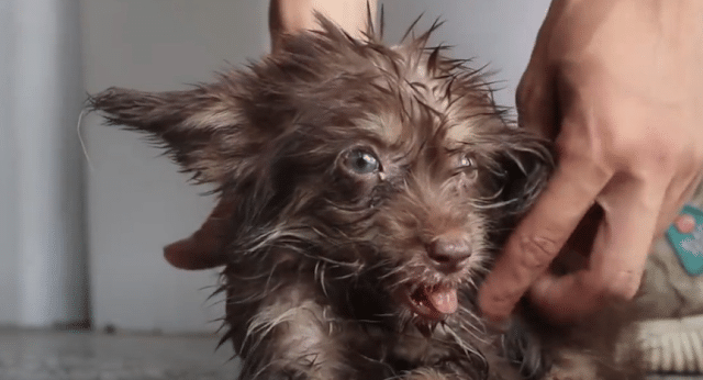 In the middle of a busy, bustling city, where life moved fast and the hum of the world drowned out the quiet struggles, a tiny puppy sat alone by a trash bin. Frail, exhausted, and alone, it was easy for this little one to be overlooked. Its body was weak, its fur tangled and dull from neglect, but it was its eyes that spoke the most. There was no fear-driven aggression, no loud demand for help. Instead, the puppy’s gaze was one of quiet yearning, a hope so fragile it was almost invisible to the world around it.