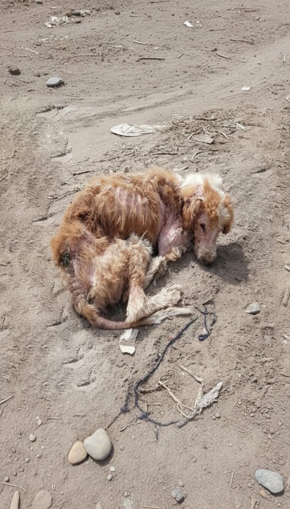 At an age when most dogs are discovering play, companionship, and safety, Charlie had already endured a level of hardship no living being should face. His skin showed clear signs of long-term neglect. His strength was nearly gone. Curled low against the ground, he seemed to shrink into himself, as if trying to take up as little space as possible in a world that had overlooked him for far too long.