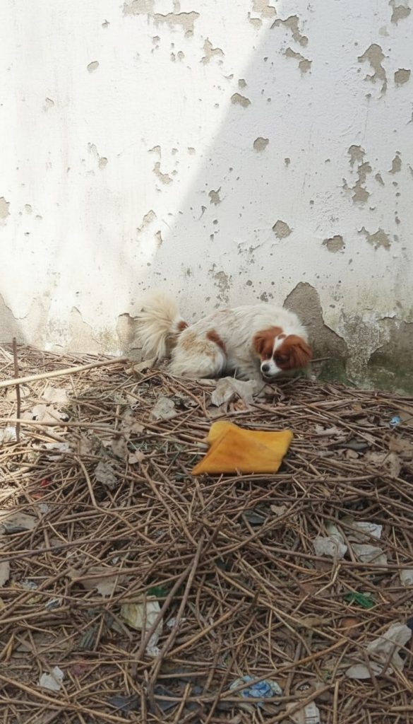 She was first seen on a quiet street, curled tightly into a corner as if trying to disappear. Cars passed. People walked by. Most never noticed her. Those who did might have assumed she was resting or waiting for someone. But a closer look revealed the truth.