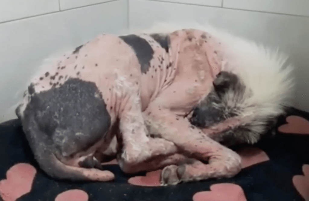At first, it was easy to dismiss — an itch that lingered too long, small patches of irritated skin hidden beneath her thick coat. But the irritation worsened. Fur thinned and fell away. Her skin grew sore and exposed. The strong dog who once stood tall began to tire easily. Her steps slowed. The light in her eyes faded.