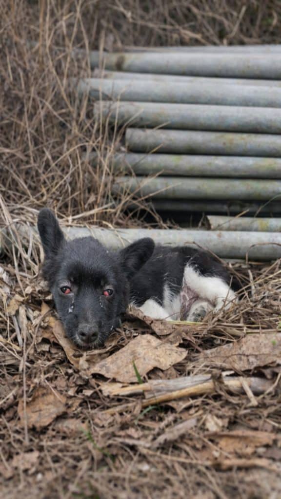 She was painfully small and severely undernourished. Too weak to move far, she stayed where she had collapsed, conserving every bit of energy she had left. The heat of the day drained her body, and when night came, the cold settled in deeply. Hunger was constant, but loneliness felt even heavier. Now and then, she made soft, uncertain sounds—not cries of panic, but gentle signals, as if she were politely asking the world to notice her.