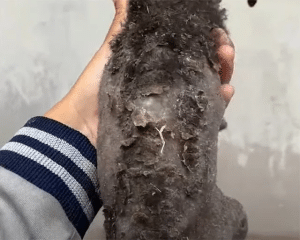 She was small, fragile, and visibly exhausted. At an age when puppies should still be nursing and sleeping in safety, Mochi was already learning how to endure. Her thin, tangled coat showed signs of constant exposure, and her cautious steps reflected a life shaped by uncertainty rather than play. The street was not just loud and overwhelming—it was dangerous.