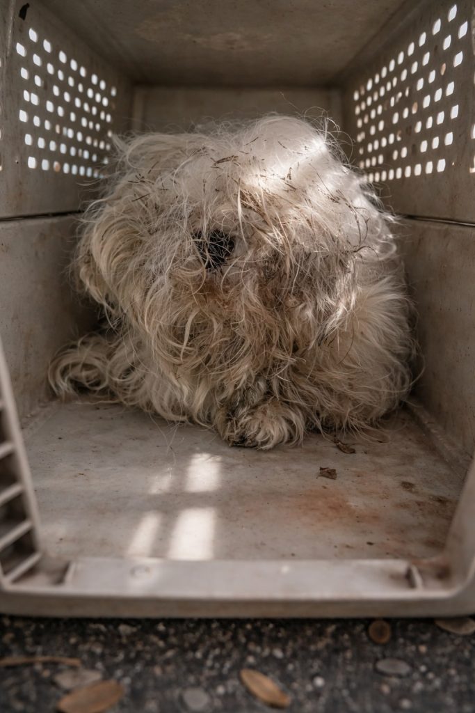 To people passing by, Crunchy may have looked scruffy or unkempt. But beneath that tangled coat was a much more serious reality. The mats trapped dirt and moisture, weighed him down, and caused ongoing discomfort. They weren’t just cosmetic—they were painful.