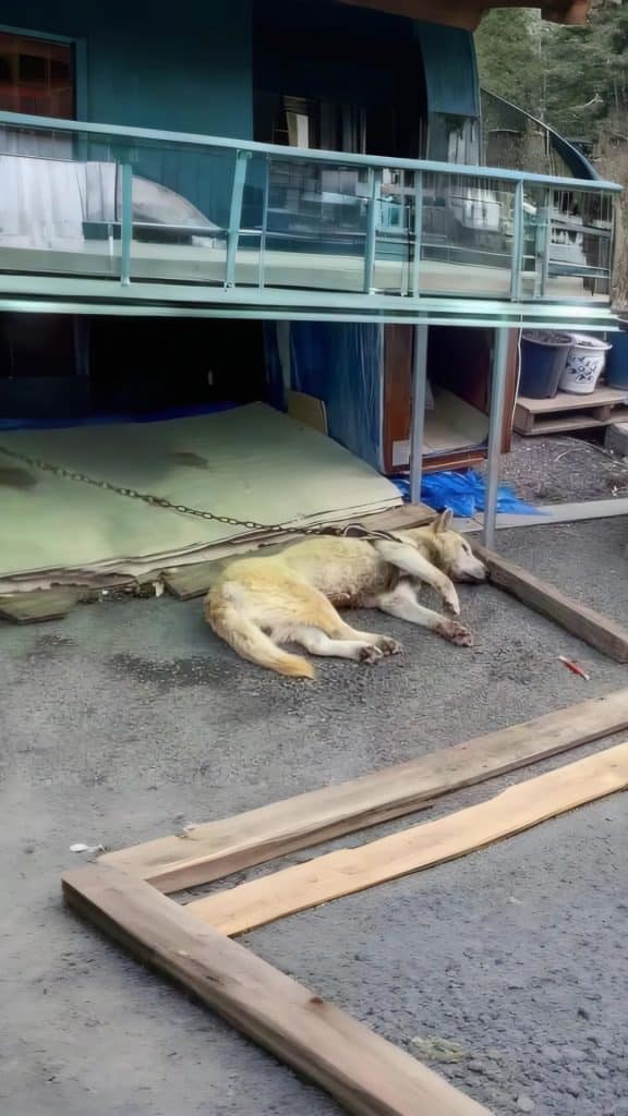 At the veterinary clinic, the depth of Lucky’s condition became clear. Severe muscle loss, pressure sores, and extreme weakness told a story far beyond a single cold night. A call soon confirmed what his body already revealed. For fourteen years, Lucky had lived tied outside an old factory, used as a guard dog. He knew isolation, weather exposure, and loneliness — but never companionship. When age finally took away his strength, he was dragged outside and left alone in the cold.