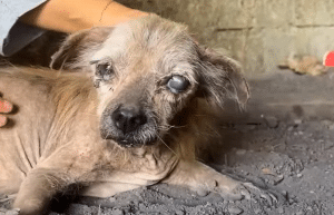 His eyes were clouded and unresponsive, yet they held more sadness than fear. He didn’t bark or retreat when people approached. Instead, he stayed still, listening closely, trying to understand his surroundings through sound and scent alone.