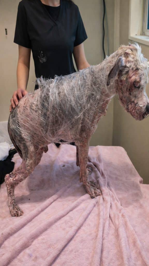 Veterinary evaluations confirmed the extent of what his body had endured. Chronic skin disease left him vulnerable to infection. Open wounds showed delayed healing. Malnutrition had stripped away muscle and stamina, leaving him frail and easily fatigued.