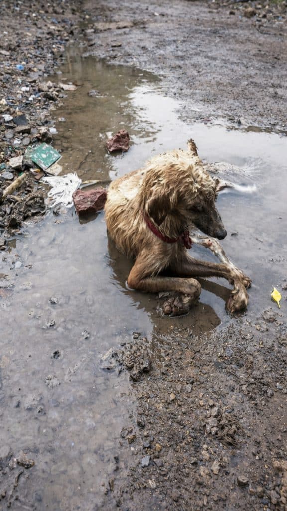 In the middle of it all lay a fragile dog later named Jeevit.