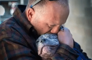 When Mike walked back into the shelter the following day, the response was immediate and unmistakable. Chunkie recognized him instantly. Her tail wagged with surprising strength, her body language completely transformed. Ears perked, eyes bright, she pulled toward him with excitement that filled the room. Staff members smiled as they watched the reunion unfold. This wasn’t just recognition—it was connection.