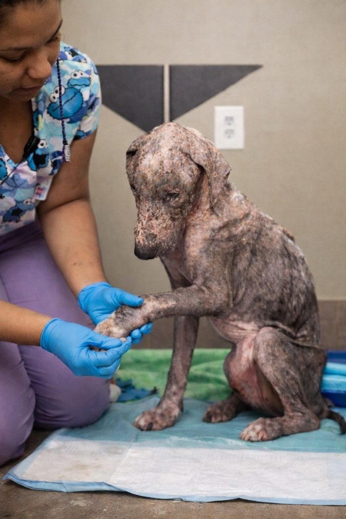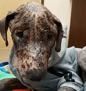Thomas was only about eight months old when his world began to unravel. Instead of experiencing the carefree curiosity of puppyhood, he was battling a severe skin condition that left his body inflamed, raw, and constantly uncomfortable. His skin burned and itched relentlessly. Every step seemed to irritate him further, and even resting offered little relief. With no family, no shelter, and no understanding of why his body hurt so badly, Thomas faced each day in quiet confusion.