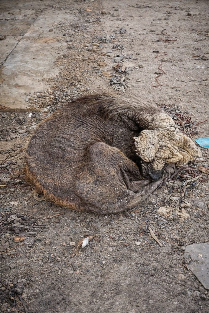 Years of surviving this way left deep marks on Benji’s body. His skin suffered the most. Constant exposure to filth and harsh conditions caused severe irritation and inflammation. Large patches of fur disappeared, revealing raw, sensitive skin that never truly had a chance to heal. The discomfort followed him everywhere, even when he tried to rest.