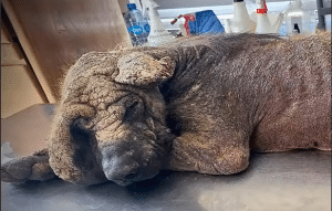 He was carefully transported to a veterinary clinic, where for the first time, he was surrounded by people focused entirely on his well-being. The extent of his condition became immediately clear. He was dangerously underweight, exhausted, and fragile—his body bearing unmistakable signs of long-term neglect.