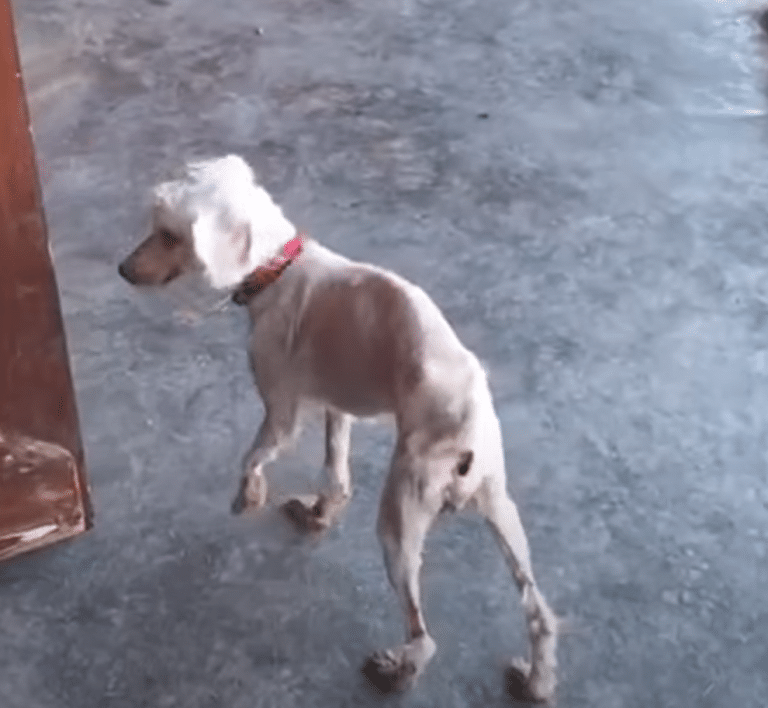 When the final layers fell away, the dog beneath was revealed. Julian was a poodle, much smaller and more fragile than anyone had expected. Without the burden of his coat, his thin frame was visible. Further examinations revealed additional challenges: a heart condition requiring monitoring, along with partial hearing and vision loss. These explained his slow movements and cautious nature.