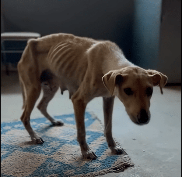 Her thin frame told a difficult story. Ribs pressed faintly beneath patchy fur. Hunger and neglect had left their mark. But it was her eyes that revealed the deepest pain—dull with sorrow, yet still gentle.