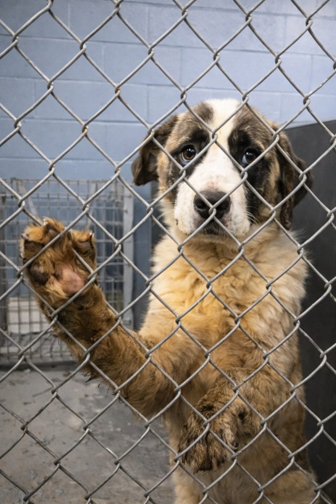Angelica, a short-haired Saint Bernard, grew into a body that the cage was never meant to hold. As she matured, the space around her shrank. Standing fully upright became difficult. Turning required effort. Her strong frame, built for movement and endurance, weakened from years without use. Muscles softened. Joints stiffened. Eventually, even the light in her eyes dimmed, replaced by a quiet acceptance of a life that never changed.