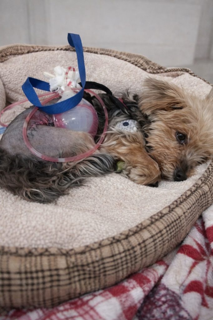 Outside, Missy continued to defend. The struggle left her injured, but she managed to drive the coyote away. By the time help arrived, her small body bore the cost of her bravery—serious wounds to her leg and body that required immediate medical attention.