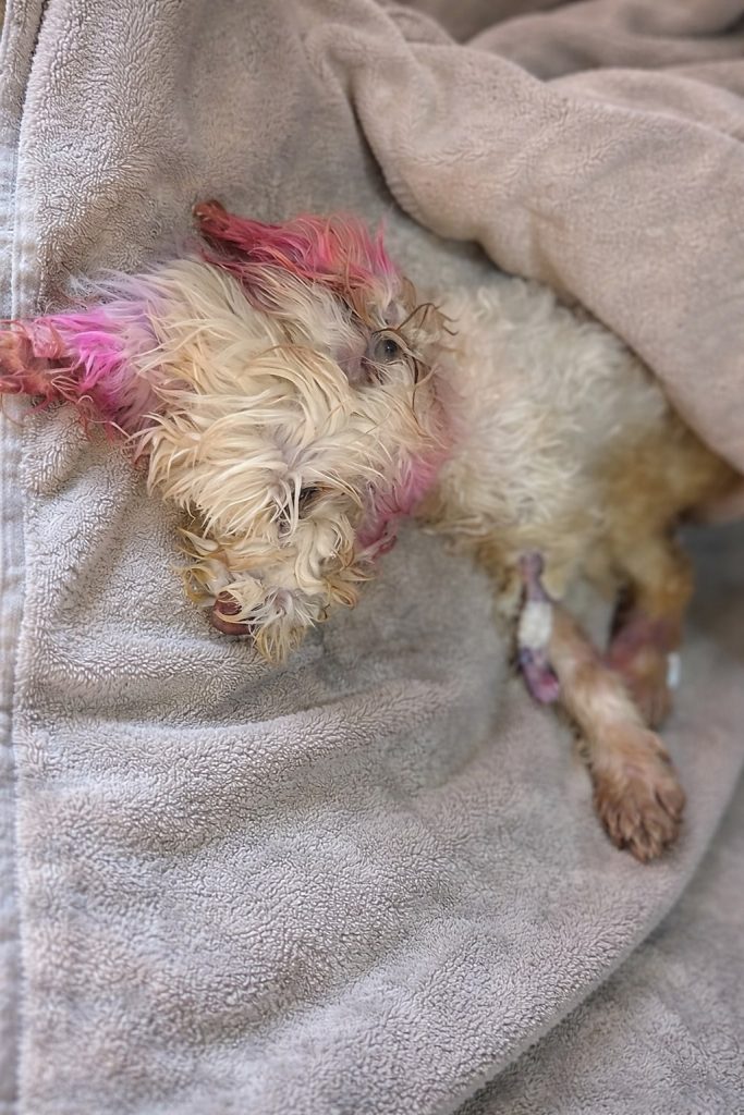 Junie was dangerously underweight, her small body weakened by prolonged hunger and exhaustion. Her fur was matted and brittle, and her skin showed signs of painful injuries that had gone untreated for far too long. It was clear she had been suffering for weeks, possibly longer. Yet in her tired eyes, there was something unmistakable. She wasn’t defeated. She still wanted to live.