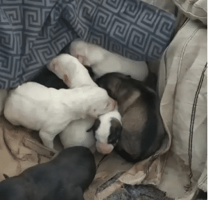 Once indoors, warmth became the first priority. The puppies were gently dried, wrapped in soft blankets, and placed in a heated space. One by one, they were fed warm milk, monitored closely for signs of strength. Slowly, their trembling eased. Their cries softened. Breathing steadied. Small signs, but powerful ones. Their mother, finally able to rest, stayed close, sensing that her family was safe.