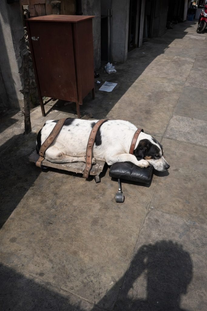 Later, he would be called Cabezón—a name inspired by the way his head fell forward from injury and fatigue. But in that moment, he was simply another forgotten dog in a city where strays are often overlooked. Surrounded by constant movement, he remained unseen.
