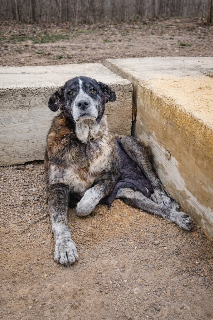 No one knows how long Maya survived like that. By the time she was finally noticed, she no longer had the energy to search for food or water. Hunger and thirst had worn her down completely. Her coat was dull, her skin fragile, and illness had begun to take hold. But the most painful detail was her eyes. They no longer searched for help. They carried the quiet acceptance of a dog who had waited too long.