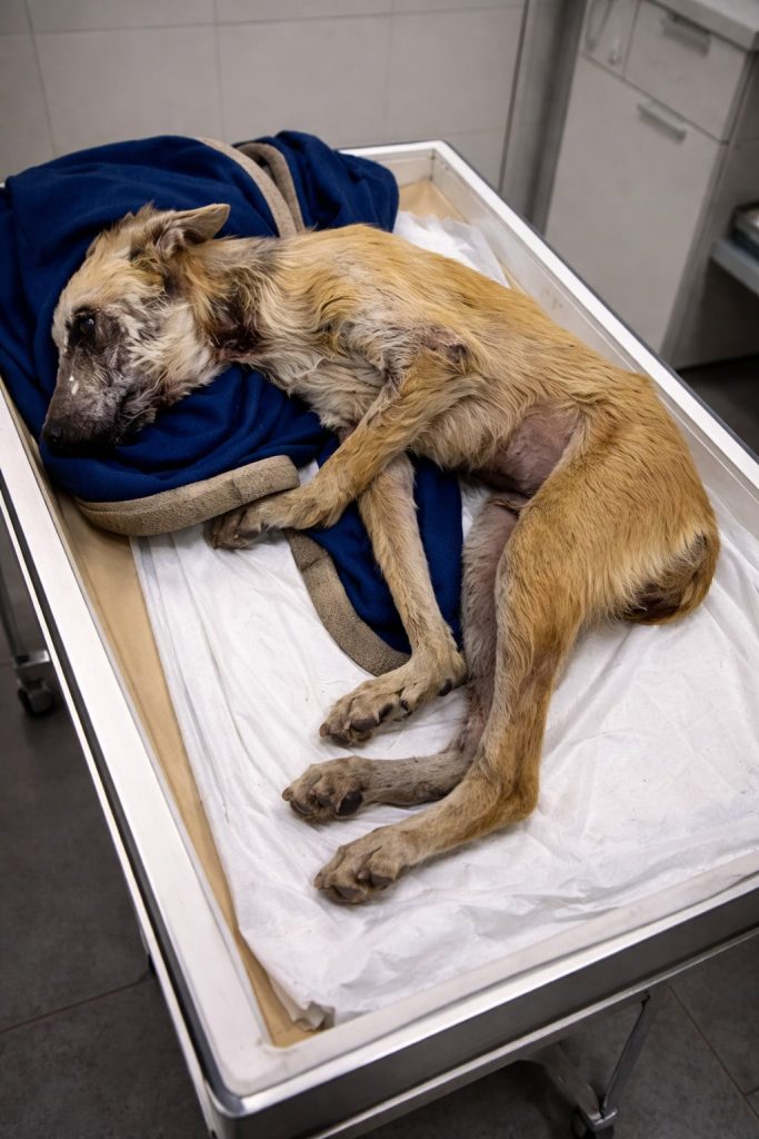 Wrapped carefully in a warm blanket, Zippo was rushed to a veterinary clinic. The examination revealed how serious his condition truly was. He wasn’t weak from hunger alone. Neurological complications were affecting his movement, and a mass near his neck was putting dangerous pressure on his body. Severe calcium deficiency had left his limbs fragile and unstable, explaining why standing had become impossible. The prognosis was uncertain, but giving up was never an option.