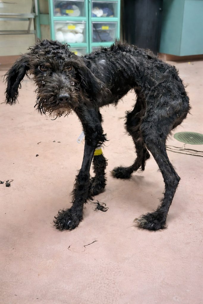 At the veterinary clinic, the reality of his condition became clear. Years without proper care had left him severely undernourished and dehydrated. His body carried the strain of prolonged neglect, but there was one encouraging sign that gave everyone hope. His heart was strong. His eyes followed movement. Despite everything he had endured, he was still present. That quiet awareness meant recovery was possible.