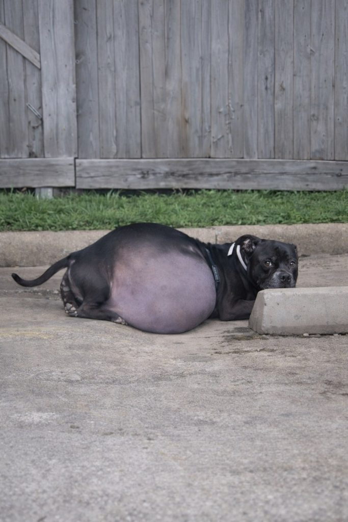 At the clinic, veterinarians worked quickly to understand what was happening inside her body. Tests confirmed their fears. More than six liters of fluid had accumulated inside Bonita—nearly equal to her own body weight. The pressure was overwhelming. The team began carefully draining the fluid, monitoring her closely with every step. As the fluid was released, Bonita’s breathing eased. Her body relaxed. For the first time in a long while, she felt relief.