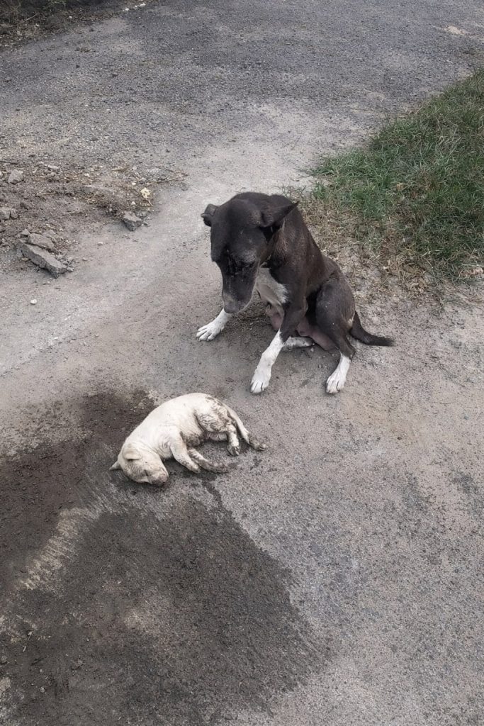 “Save her please”, Mama dog begs passerby in tears, she helplessly watched her puppy fade away