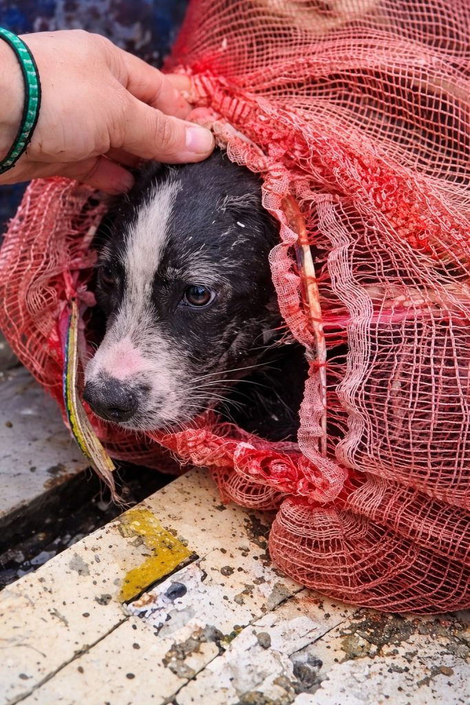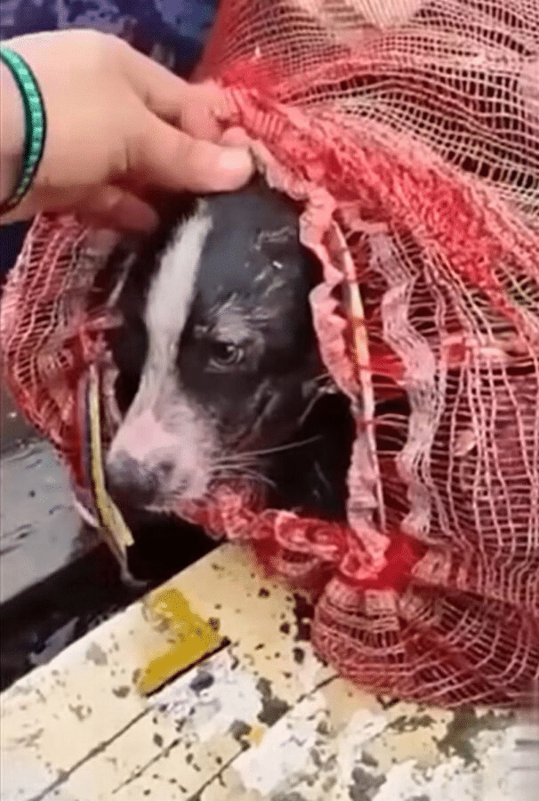 Once freed from the sack, he didn’t try to escape. Instead, he rested his head against my knee, as if he understood that the river had finally let him go. There was no struggle, no panic — only surrender. Despite everything he had endured, he trusted us. That trust felt heavy with responsibility.