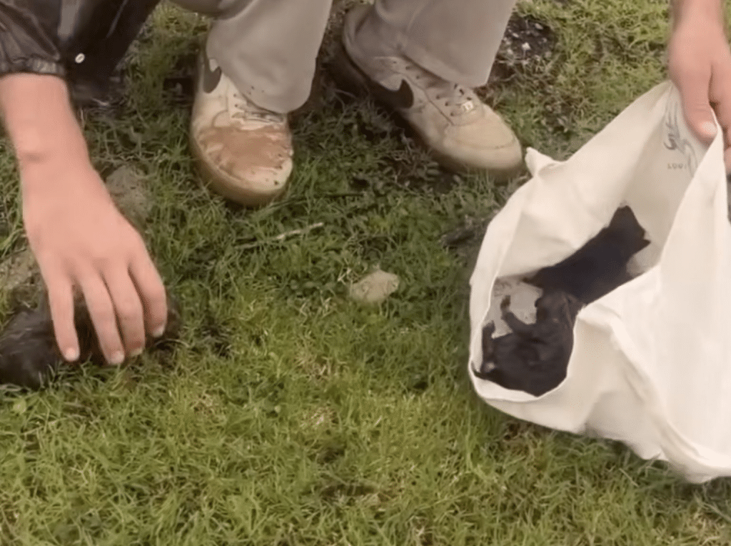 The streets were slick with rain, the sky heavy and gray. Most people were focused on getting home quickly, heads down, minds elsewhere. She was driving her usual route after work when something near the curb caught her eye — a dark shape pressed against wet grass.