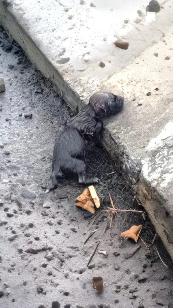She pulled over, stepped into the rain, and walked closer. What she found stopped her cold. Lying in the mud was a newborn puppy, so small it fit easily in the palm of her hand. Its eyes were still closed. Its body was soaked and chilled to the bone.