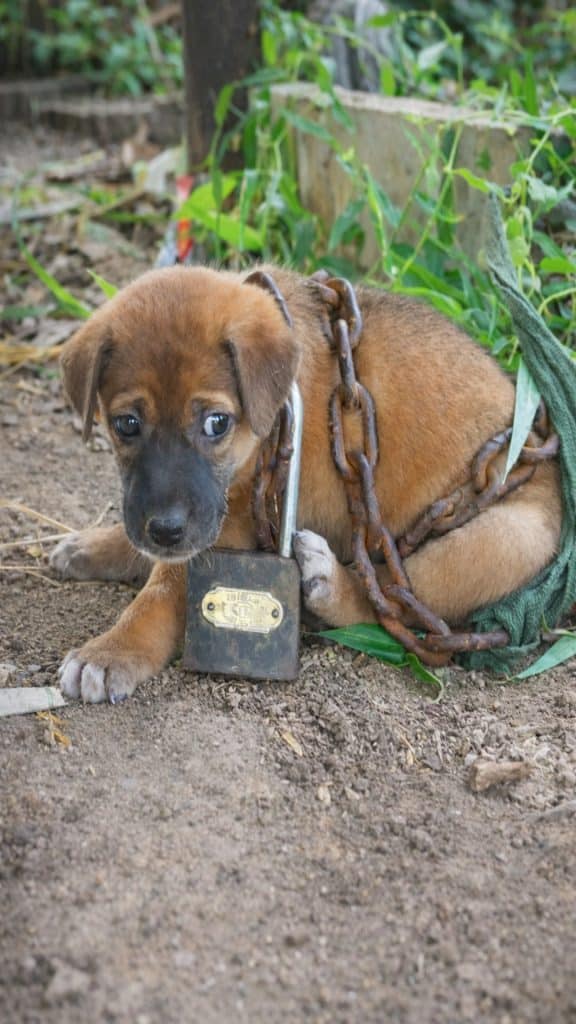 In a quiet part of town, far from busy streets and passing crowds, a small dog named Steel lived a life few ever noticed. He was chained in place, left alone through cold nights and long days, with no explanation and no comfort. The metal links that held him were more than restraints — they were a sign of how long he had been forgotten.