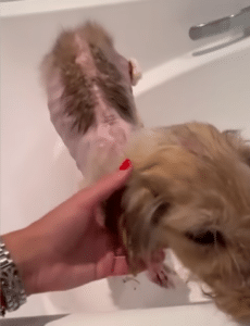 I gently lifted him, immediately struck by how light he felt in my arms. His small body was fragile, almost weightless, and his fur was dull and matted from neglect. He didn’t resist. He didn’t struggle. He simply rested there, as though he had finally run out of strength. Without hesitation, I rushed him to the nearest animal shelter, knowing that time was not on his side.