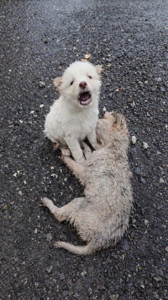 Witnesses later said the puppy circled its fallen friend again and again. It nudged gently with its nose, stepping back, then returning, as if expecting the other dog to rise at any moment. To the puppy, companionship had been survival. Warmth. Safety. The one constant in a difficult life. And now, without warning, that constant was gone.