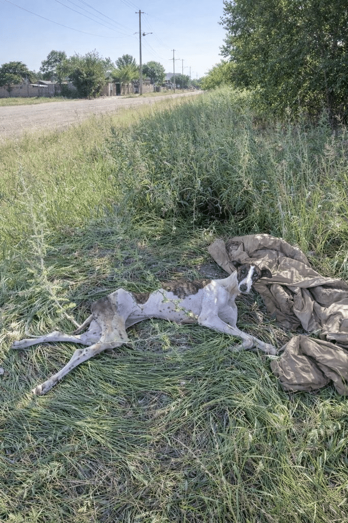 Unable to see danger or kindness coming, Sari relied on instinct, memory, and sound. Her body grew thin. Her skin became irritated from constant exposure. The rusted chain around her neck was a permanent reminder that someone had chosen convenience over compassion. Still, Sari endured. She listened. She waited. Every unfamiliar sound carried the faint possibility that someone might finally notice her.