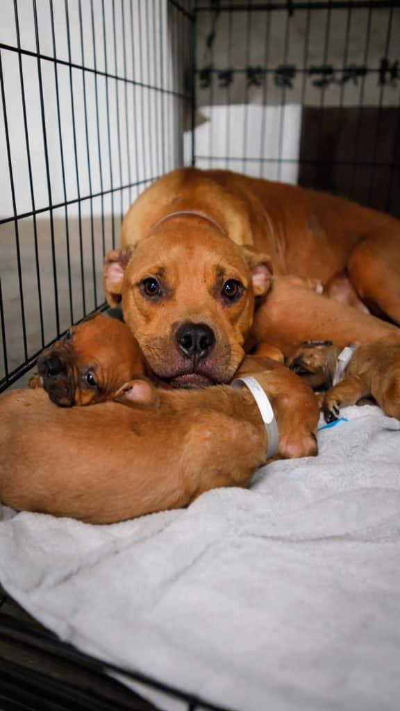 She became a mother with quiet confidence, instinctively attentive and deeply devoted. She stayed close to her puppies, watching over them constantly, ensuring they were warm, fed, and safe. Even in an unfamiliar environment, her focus never wavered. Her movements were gentle, deliberate, full of purpose. It was clear that caring for her puppies gave her a sense of belonging she had never known before.