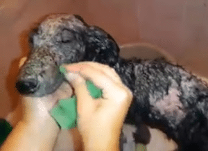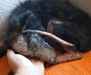 The following day, Neve was taken to the veterinarian. Her wounds were treated, her skin condition addressed, and tests revealed that she was anemic, explaining her constant exhaustion. With proper nutrition, medication, and rest, her recovery could finally begin. For the first time in ages, Neve had a warm bath, a full meal, and a soft place to sleep. That night, she rested deeply, her body finally able to relax.