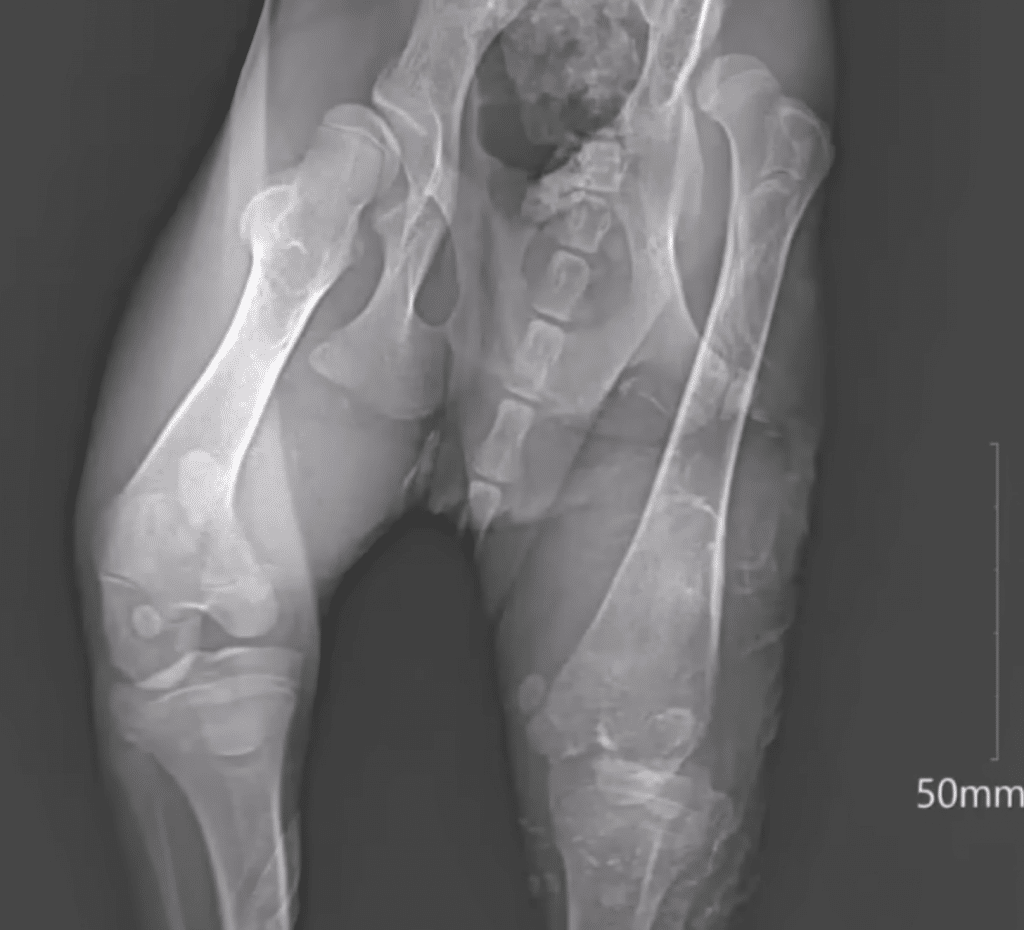 At the veterinary clinic, the reality of Bonbon’s past became clear. Old fractures and physical deformities told the story of long-term hardship. His body was fragile, and recovery would take time.