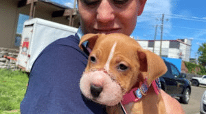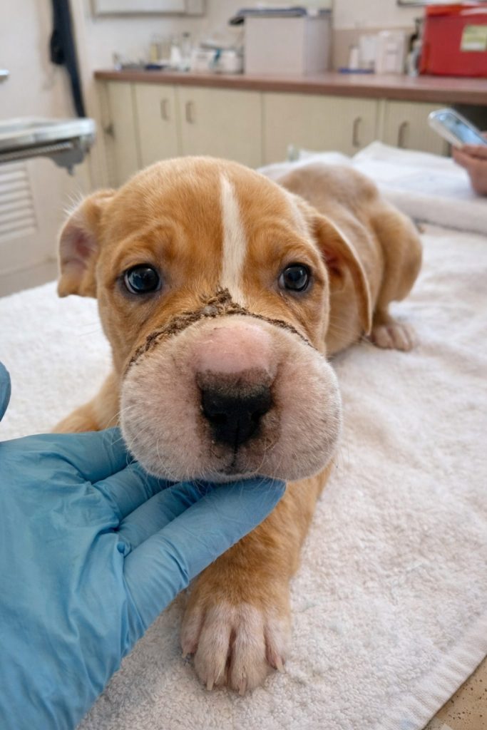 Tiffany’s suffering began before she ever had a chance to understand the world. As a very young puppy, someone tied a hairband tightly around her muzzle, attempting to silence her natural instincts. Over time, the band cut deeper and deeper into her skin. The swelling grew severe. Pain became constant. She was left alone, unable to eat properly, unable to defend herself, and unable to escape what was slowly harming her. No one knows how long she endured this—but by the time she was found, her condition was urgent.