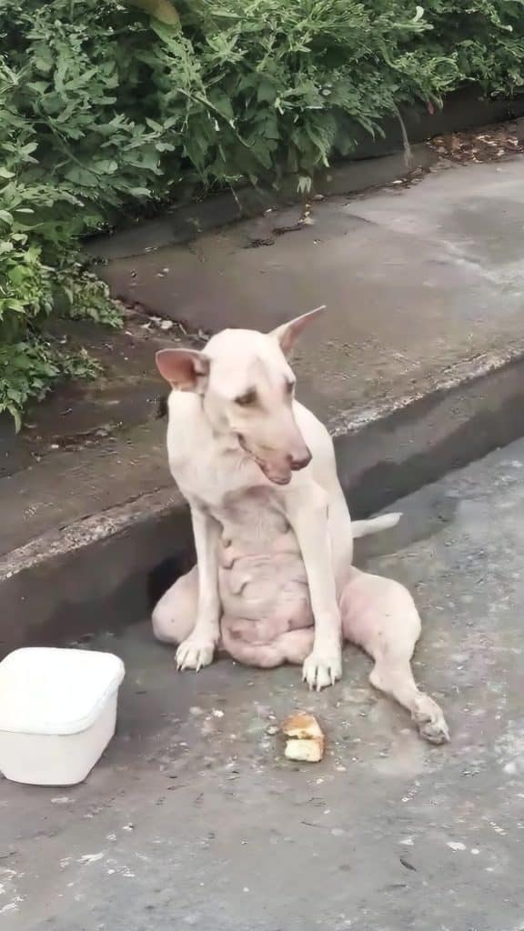 The injury was likely caused by being struck by a vehicle shortly after giving birth. It explained her trembling body, her difficulty walking, and her refusal to leave the sidewalk. The medical team also suspected that her puppies may have been taken by someone who feared she wouldn’t survive.