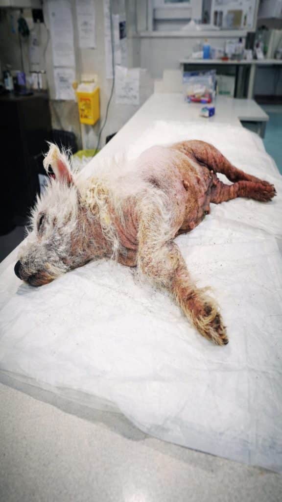 His body was thin and tired, his fur matted and dull from long hours under the sun. His skin showed signs of irritation, and even the simplest movement seemed to cost him more effort than he had to give. He wasn’t exploring. He wasn’t resting in comfort. He was simply enduring another lonely day.