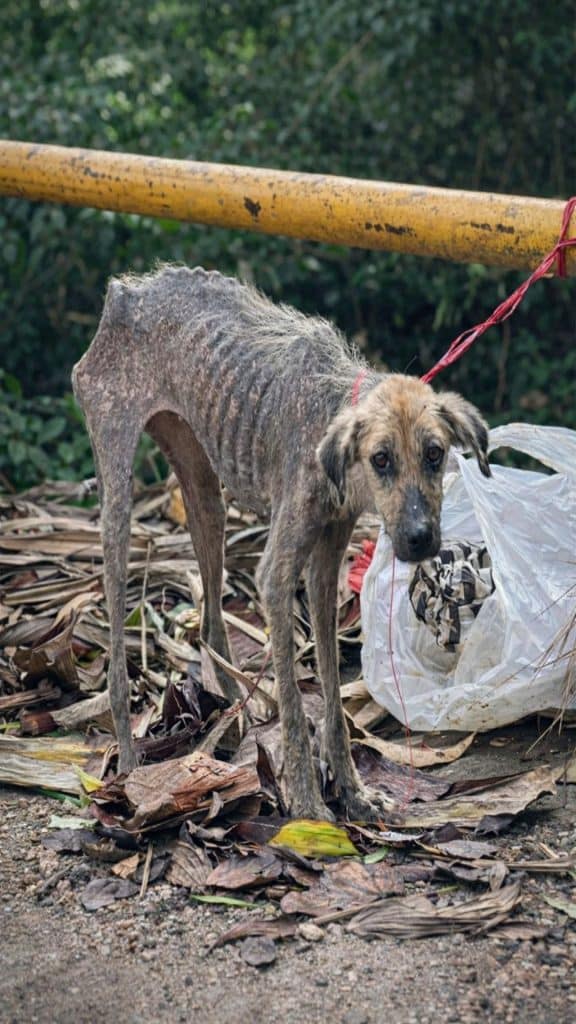 Lisa’s journey began in a place where no animal should ever be abandoned. On a busy bridge, surrounded by people rushing past each day, she sat tied up and alone. There was no shelter from the heat or rain, no food, no comfort — and no understanding of why she had been left behind. Not even a year old, Lisa had already learned what neglect felt like, her young body carrying a burden far heavier than it should have.