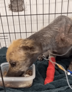 At the veterinary clinic, the reality of Lisa’s condition became impossible to ignore. She was suffering from extreme malnutrition caused by prolonged starvation. Blood tests revealed dangerously low red blood cell levels, placing her life at immediate risk and raising the possibility of a blood transfusion.