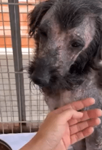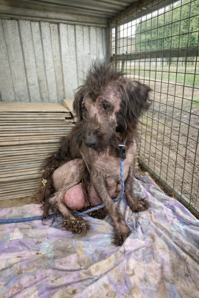 When rescuers finally reached her, Lilien trembled at every approach. She allowed herself to be lifted only after careful patience, and even then, her body remained tense. Up close, the signs of long-term neglect became clear. She was painfully thin, her coat patchy, her skin irritated and sensitive to touch.