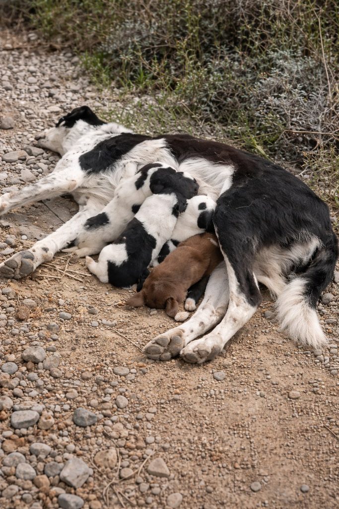 She lay down. The puppies crawled closer. And she began to nurse them.