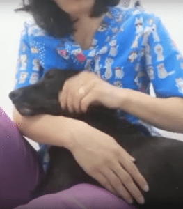 She was reunited with her puppies during recovery. One did not survive, and she mourned in her own quiet way, nudging the tiny body before lying still beside the others.