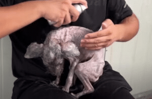 Thick mats were trimmed away, uncovering dry, irritated skin and signs of long-term neglect. When it was time for his first bath, he trembled — unsure of what would come next.